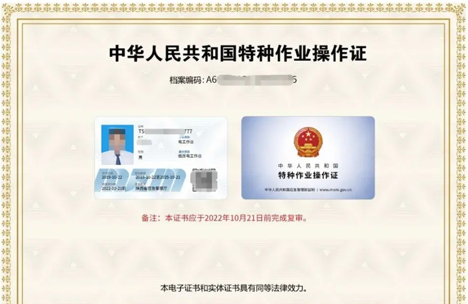 1.电工证(高压电工作业;低压电工作业;电力电缆作业;防爆电气作业;继电保护作业;电气试验作业)